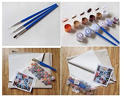 - Hochwertige Pinsel und sichere Acrylfarben. Einfach zu folgen Anweisungen. Textile Kunst Leinwand vorgedruckt. Achtung: Die Farbkits nach Anzahl sind rahmenlos, dh der Holzrahmen ist nicht im Lieferumfang enthalten und der Lack muss selbst lackiert werden. Die Leinwand wird für den Transport gefaltet, Sie können die Bügelmaschine benutzen, um sie zu holen.